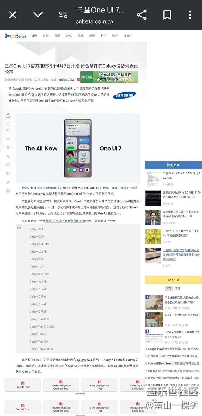 4.7號開始推送one ui 7嗎?真實性有幾成? 圖片