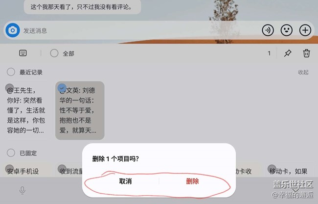 在刪除剪貼板內(nèi)容時(shí),彈出對(duì)畫框,如圖所標(biāo)區(qū)域點(diǎn)擊沒(méi)反應(yīng)。 圖片