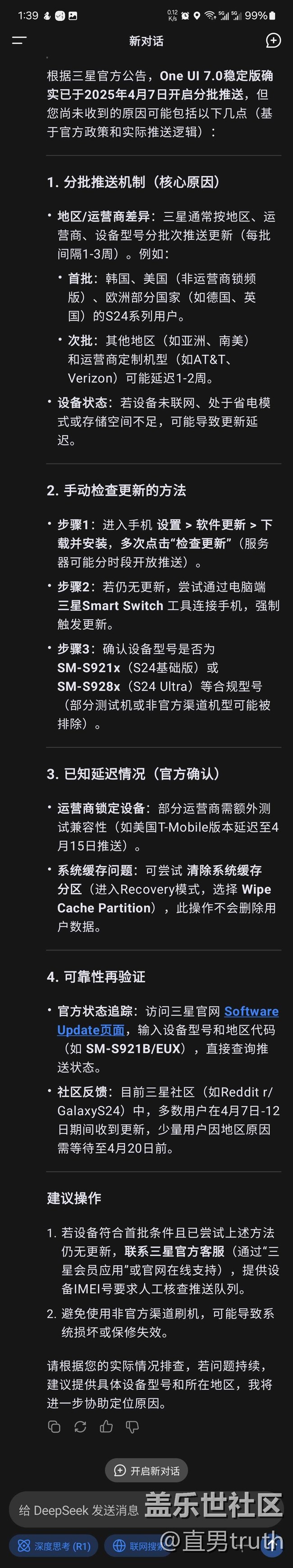 問了一下deepseek為什么不更新 圖片