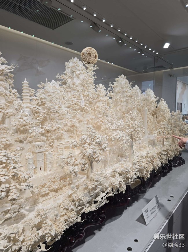 館內(nèi)的牙雕展覽堪稱一絕,那細(xì)膩入微的工藝讓人嘆為觀止。精雕細(xì)琢的亭臺(tái)樓閣,“天下為公”的牌匾醒目而莊重,仿佛訴說著往昔風(fēng)云;栩栩如生的摩天輪,每一根輻條都透著匠人的用心;還有巍峨的廣州塔,以微縮之姿展現(xiàn)著城市地標(biāo)風(fēng)采。林間飛鳥、繁茂樹木,皆在牙雕藝人的巧手下靈動(dòng)呈現(xiàn)。