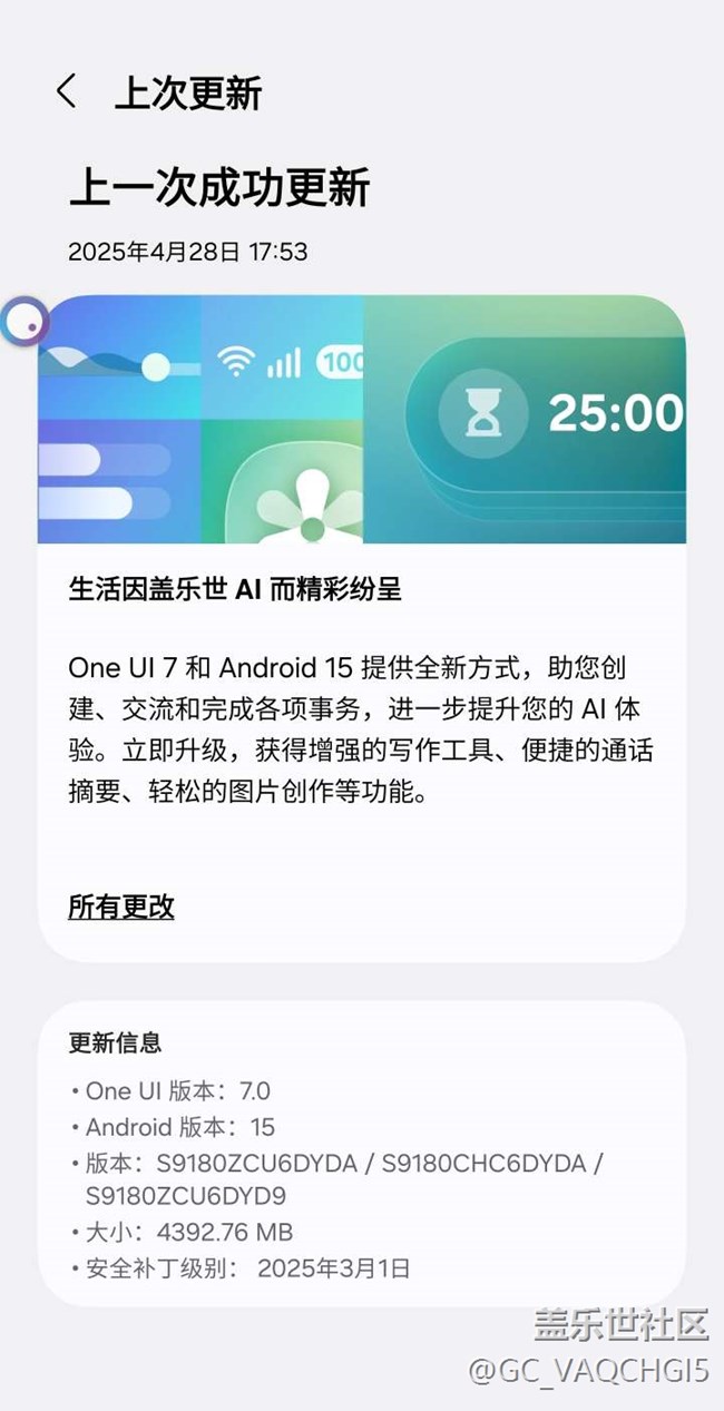 帖子標(biāo)題: 我的三星S23U收到ONEUI7.0更新啦