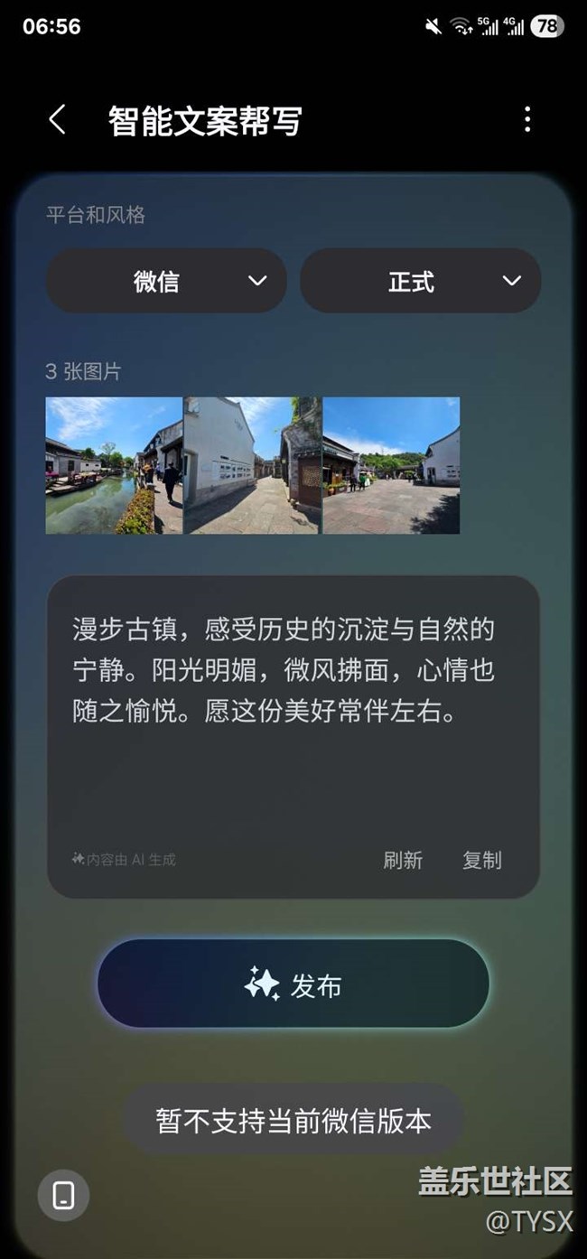 選擇多張圖片智能幫寫時。出現不支持當前微信版本。 圖片