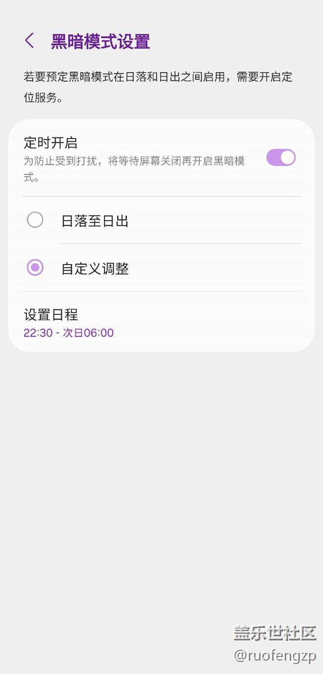 黑暗模式設(shè)置定時(shí)開啟后,無(wú)法定時(shí)關(guān)閉 圖片