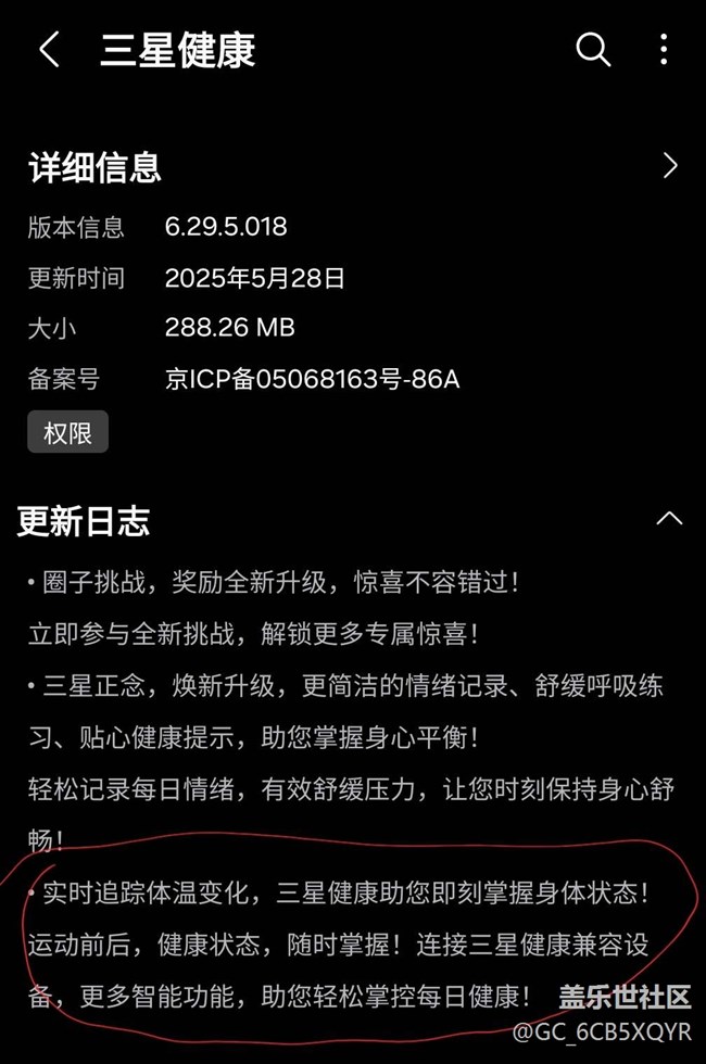Samsung health中國(guó)大陸區(qū)更新日志實(shí)時(shí)體溫? 圖片