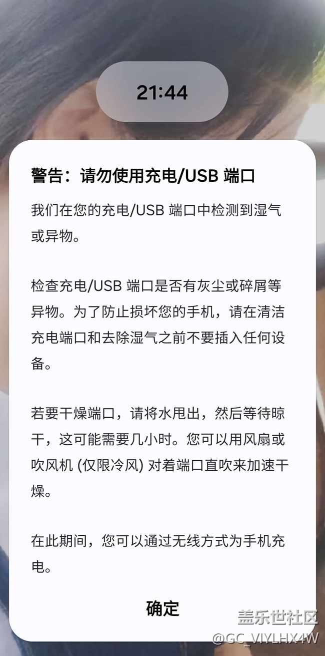 S21,正常使用,沒進(jìn)水……今天充不進(jìn)電了,提示充電口進(jìn)水有異物……
