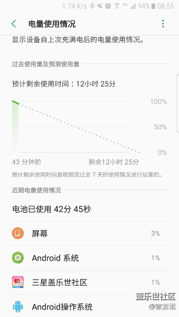 剛剛充滿電,又測試了一下平常用的應(yīng)用聊聊QQ微信之類的,偶爾逛逛蓋世樂社區(qū)。新電池的續(xù)航比較滿意。