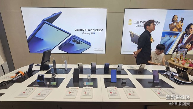 進(jìn)店就能看到展臺(tái)上整齊擺放的Galaxy Z Fold7與Flip7真機(jī),店里不僅準(zhǔn)備了當(dāng)季店長(zhǎng)現(xiàn)切水果拼盤(pán),以及小零食、飲料等,還專(zhuān)門(mén)提供了免費(fèi)貼膜,我們好幾個(gè)星粉都貼上了嶄新的膜!