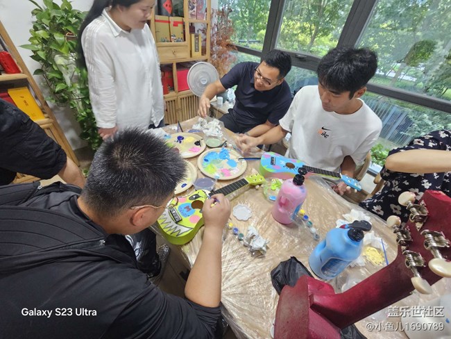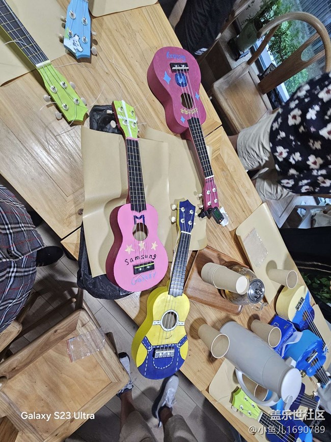 對于許多人來說,尤克里里是一種全新的樂器,雖然只有四根弦,但它那獨特的音色和簡單易學的特點,讓大家一下子就產(chǎn)生了濃厚的興趣。繪畫完琴身后,酋長王老師為大家介紹尤克里里的基本構(gòu)造和演奏技巧。從琴頭的弦鈕,到琴頸上的品絲,再到琴箱的共鳴原理,老師講解得細致入微,星粉們也聽得津津有味,不時提出自己的疑問。隨后,老師開始示范如何彈奏簡單的和弦和旋律,手指在琴弦上輕快地跳動,美妙的音符隨之流淌出來。大家跟著老師的節(jié)奏,紛紛嘗試著撥動琴弦,雖然一開始有些生疏,但在老師耐心指導下,很快就掌握了基本的彈奏方法。