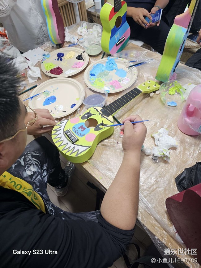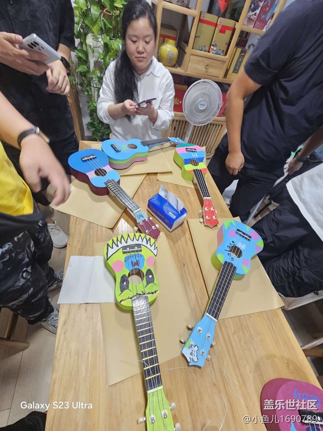 參加活動的星粉們陸續(xù)到來,大家的臉上都洋溢著興奮與期待。簽到之后,大家開始對原始的尤克里里胚胎進行繪畫,把自己的幻想繪于琴身上,還加上了對蓋樂世社區(qū)十周年的創(chuàng)意。