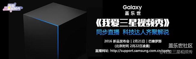 2月22日凌晨0:45分開始,《我愛三星視頻秀》不僅有巴塞羅那三星Galaxy2016新品全球發(fā)布現(xiàn)場同步直播,更有眾多KOL科技達人、三星電子內(nèi)部專家齊聚、親臨《我愛三星視頻秀》演播室現(xiàn)場,針對你們關(guān)注的The Next Galaxy進行現(xiàn)場精彩犀利點評,爆料你所不知道的關(guān)于The Next Galaxy的更多內(nèi)幕!