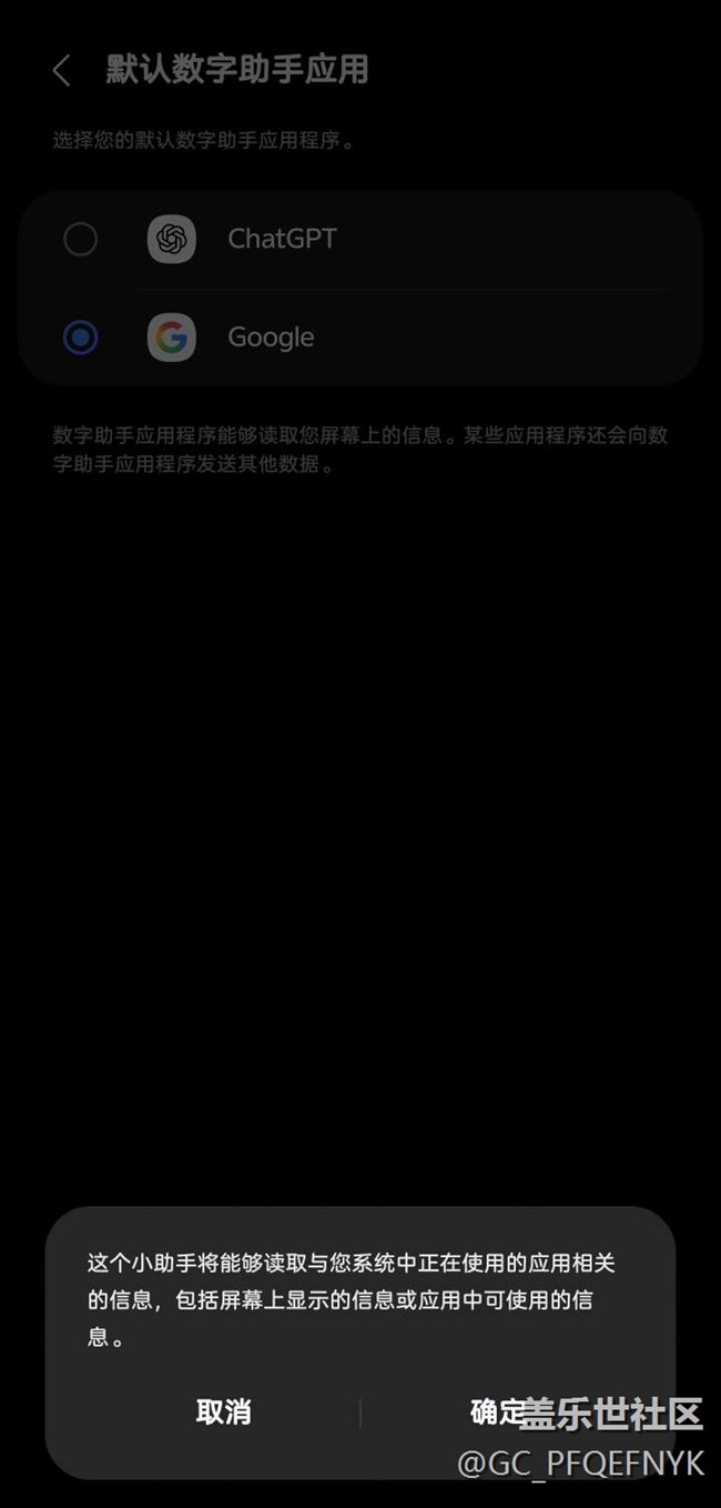 設置 — 高級功能 — 側面按鈕 — 長按 — 默認數(shù)字助手應用。設置好后可以正常使用,手機重啟后長按功能失效。需要從新設置二次確認才能使用。使用。