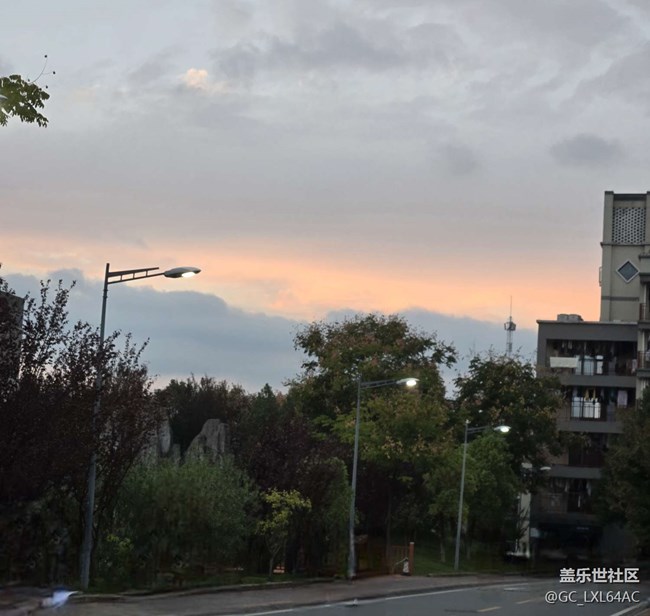 晚上路邊的晚霞和昏黃的路燈還挺有氛圍感的