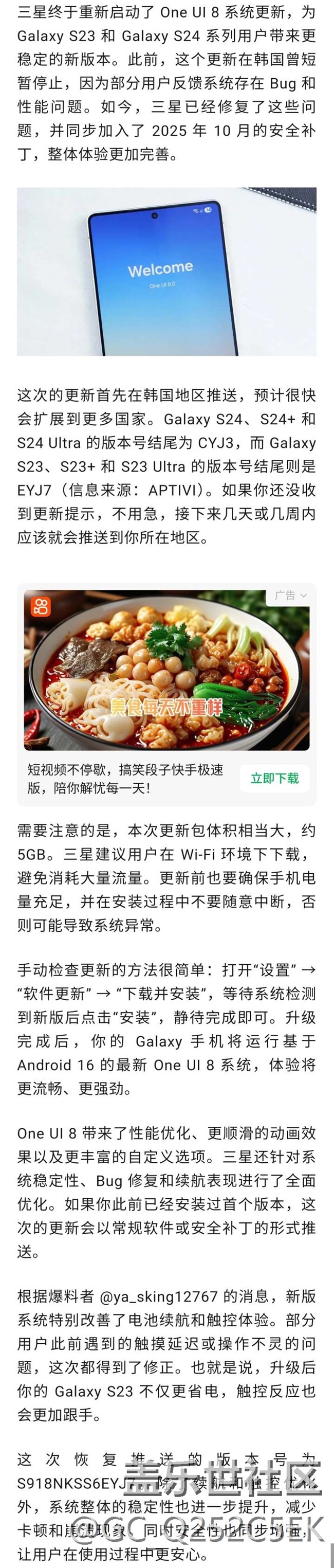 帖子標(biāo)題: 三星重啟 One UI 8 更新:修好 Bug、提升流暢
