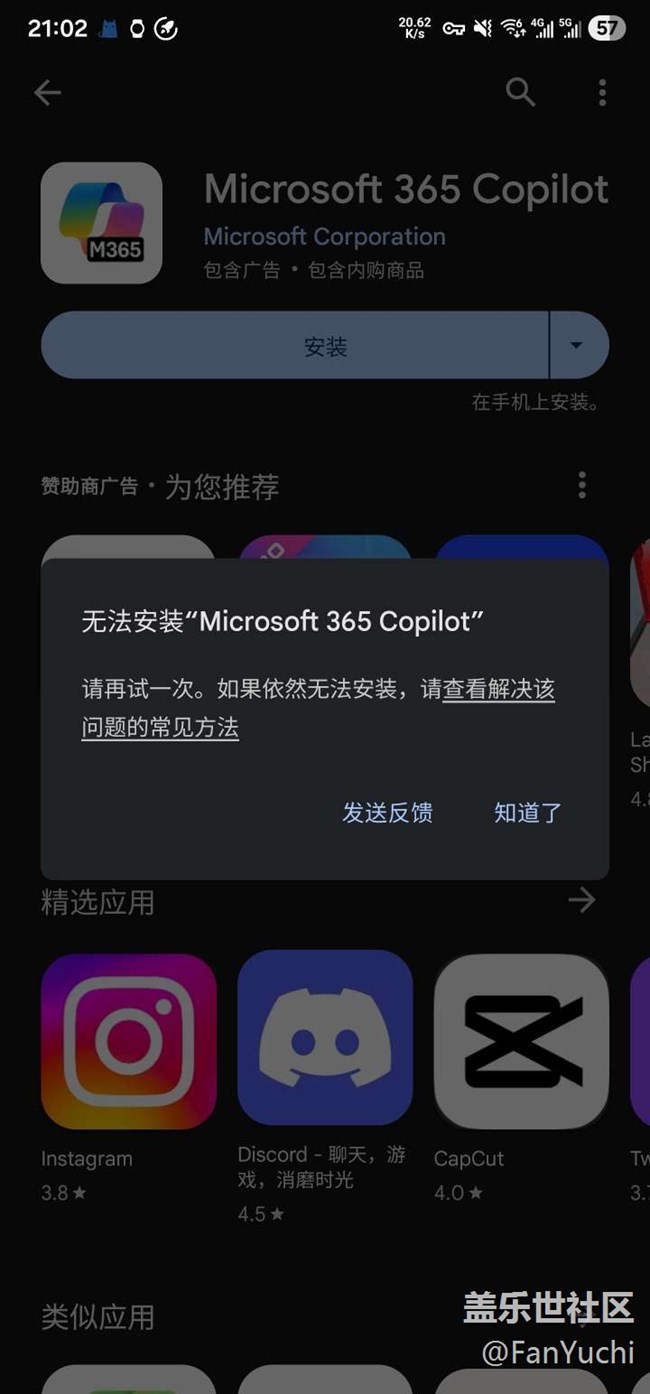 帖子標(biāo)題: 安裝google play上的office365 失敗