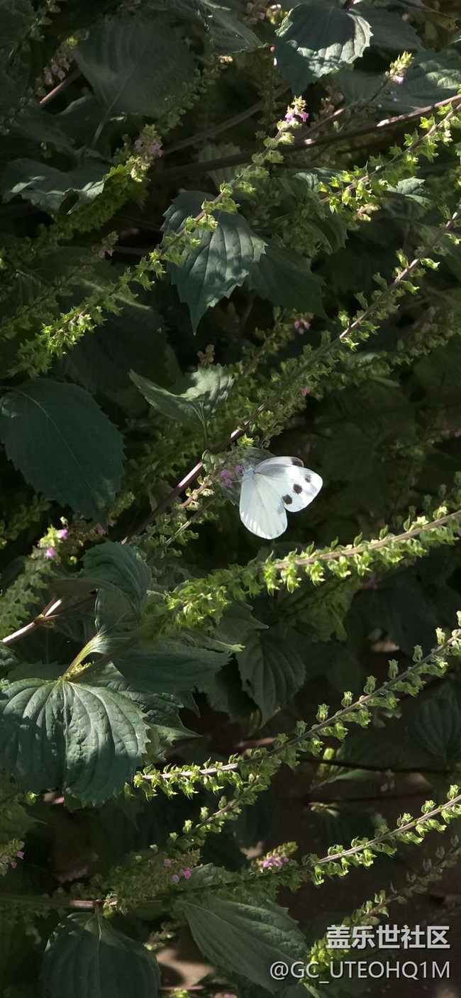 粉蝶落在院子里的紫蘇叢中