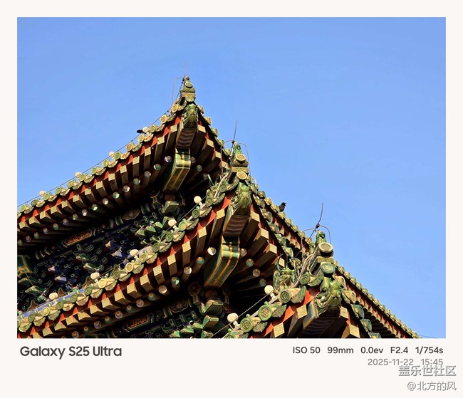 活動(dòng)中,Galaxy S25 Ultra成為記錄旅程的核心工具。在萬(wàn)春亭拍攝中國(guó)尊時(shí),手機(jī)的長(zhǎng)焦鏡頭實(shí)現(xiàn)了10倍光學(xué)變焦, 配合AI防抖功能,即便手持拍攝也能獲得穩(wěn)定畫(huà)面。在壽皇殿,廣角模式將建筑群與藍(lán)天白云納入同一幀,展現(xiàn)空間縱深感;人像模式通過(guò)虛化背景突出人物主體,膚色還原自然。此外,AI后期處理功能一鍵優(yōu)化了照片色彩與對(duì)比度,使古建筑的紅墻更顯莊重,綠植更顯生機(jī)。
