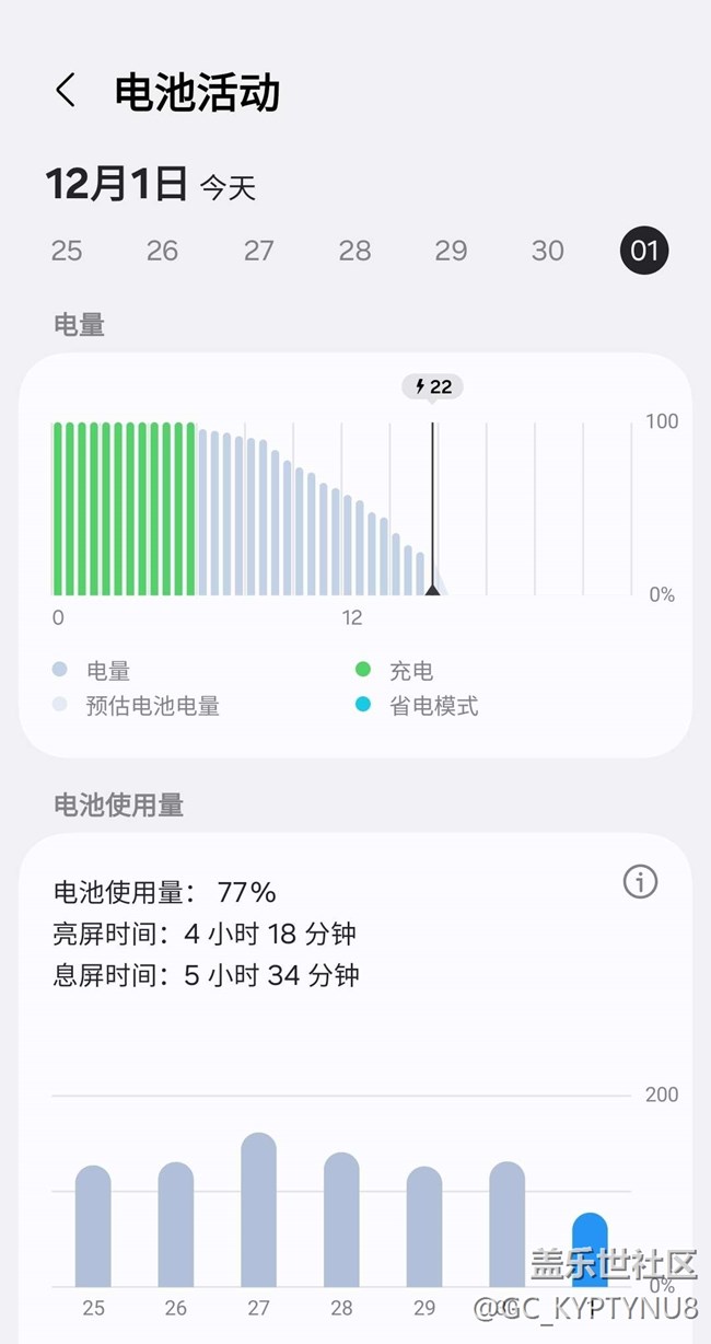 電池77%的量亮屏4小時息屏5.5小時 圖片