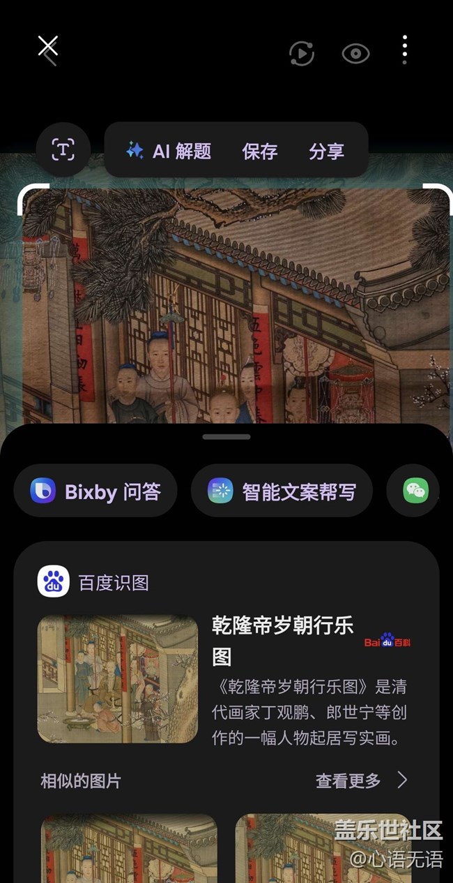 三星Galaxy S25 Ultra手機的即圈即搜,很方便的讓我們看到什么搜什么,讓我們的知識又增加了。而且這個功能更強大的是,我只拍了古畫的一部分,它卻能把畫的名字以及介紹打出來。
