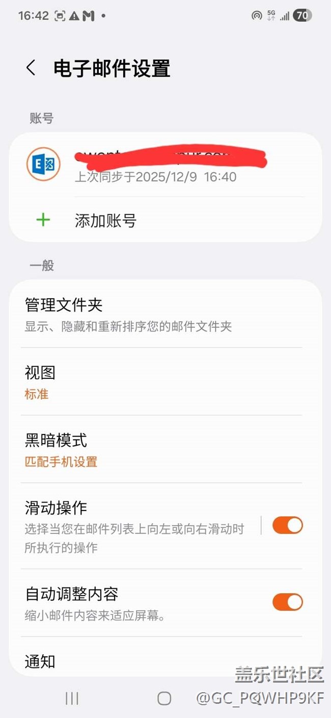 截圖已打開同步,已打開手機通知,從上周二左右無法接收郵件。