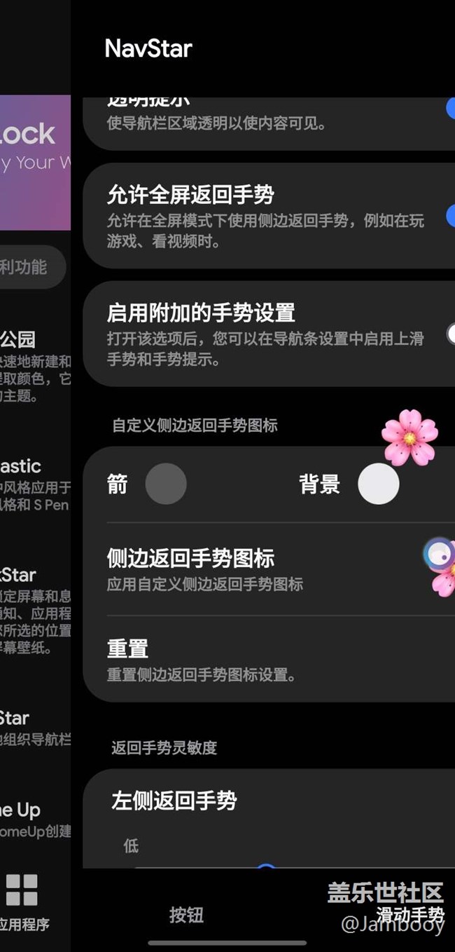 在navstar設(shè)置返回手勢圖標(biāo)后,只有關(guān)閉 onehand才能顯示。否則只能顯示onehand 的預(yù)置返回手勢動畫。