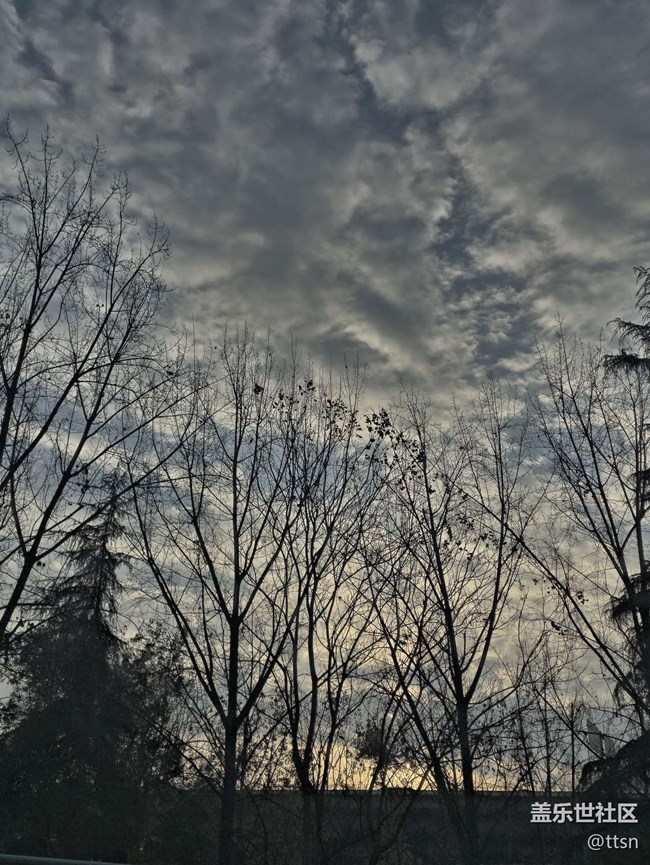 早上看太陽,看到一片樹林剪影