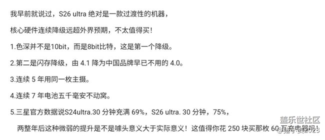 從S26 ultra 開始三星在硬件上暗地里降級 圖片