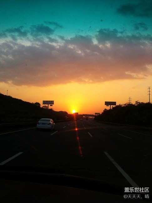 追溯夕陽(yáng),在高速上。