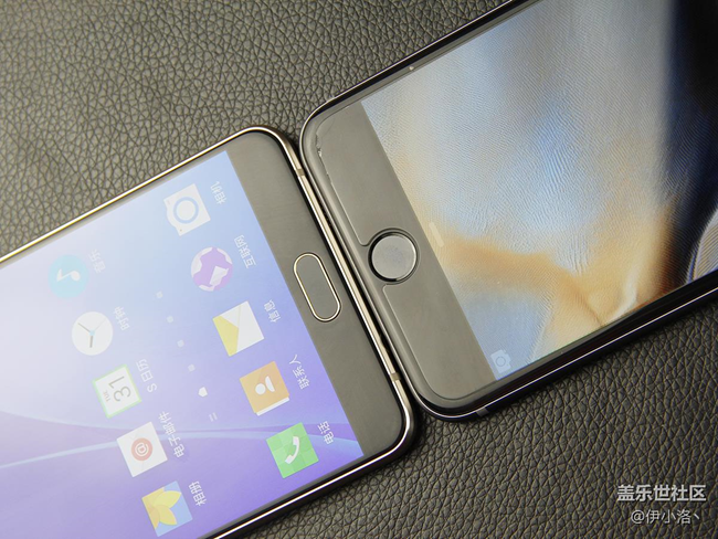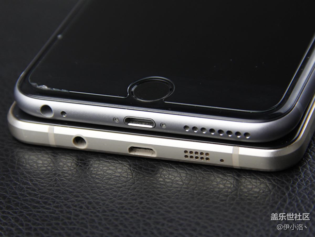 機身正面上方就是常規(guī)的聽筒、感應器、前置鏡頭。接下來再對比下底部的實體按鍵,三星Galaxy A9和iPhone 6s Plus都延續(xù)了自家經(jīng)典的風格。三星Galaxy A9橢圓形Home鍵,具有指紋識別功能,鍵程稍短于蘋果手機。iPhone 6s Plus是經(jīng)典的圓形Home按鍵,手感偏軟一些。