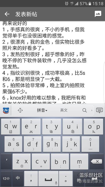 7,續(xù)航目前來看很不錯,早上90多的電量,在相對高強度的使用現(xiàn)在還有57%,基本都是4G在用,gps什么的都沒關(guān),整個機子也幾乎沒做過優(yōu)化處理。