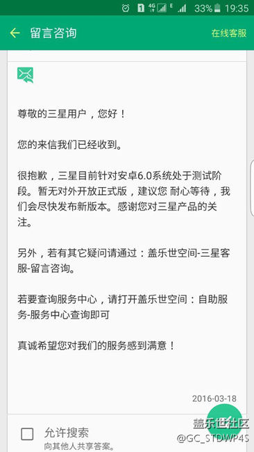 帖子名稱 關(guān)于6.0三星客服是這樣回復(fù)的