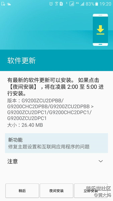 國(guó)行s6 6.0以后收到了新的推送。20+mb的,看到有的伙伴說(shuō)升級(jí)以后充電有問(wèn)題,各位怎么看,升不升