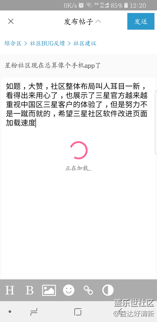 如題,大贊,社區(qū)布局讓人感覺耳目一新,能直觀感受到三星官方對客戶體驗(yàn)的重視,但努力不是一蹴而就的,希望社區(qū)app在頁面加載速度緩慢的問題上,盡快找到解決辦法