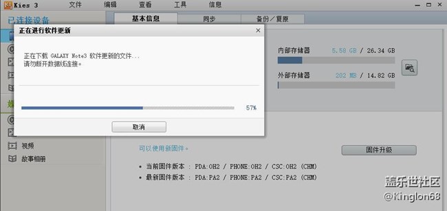 期待已久的N9008V今日終于可以更新了,因?yàn)槲业臋C(jī)子已經(jīng)root,所以是通過Kies更新的,固件版本由OH2變?yōu)镻A2,其它細(xì)節(jié)變化待安裝后探索研究。