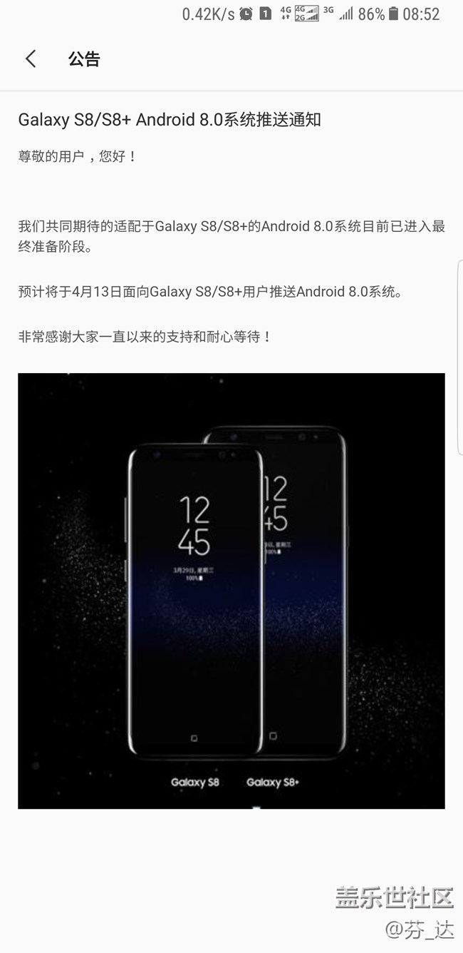 帖子名稱: 手持Note8收到了s8的升級8.0公告,對此。。。。