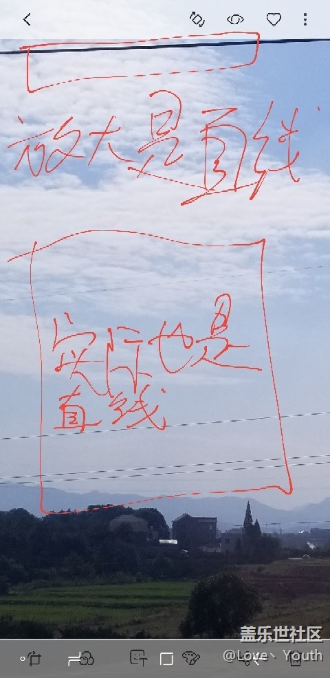 note8拍了幾張照片,突然發(fā)現(xiàn)照片里面的電線居然在正常比例下面顯示變成了波浪線,放大照片之后又正常了,然后正常比例看又變波浪線了