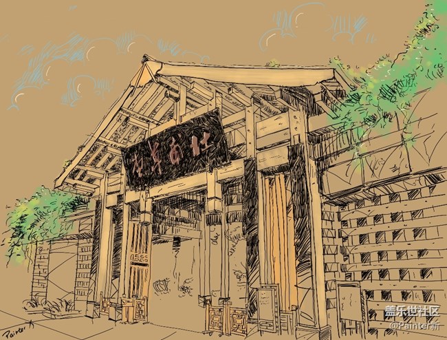 再來就是成都杜甫草堂和寬窄巷子的鋼筆淡菜速寫風格,也是出自Spen, 感受下強大的小黃筆
