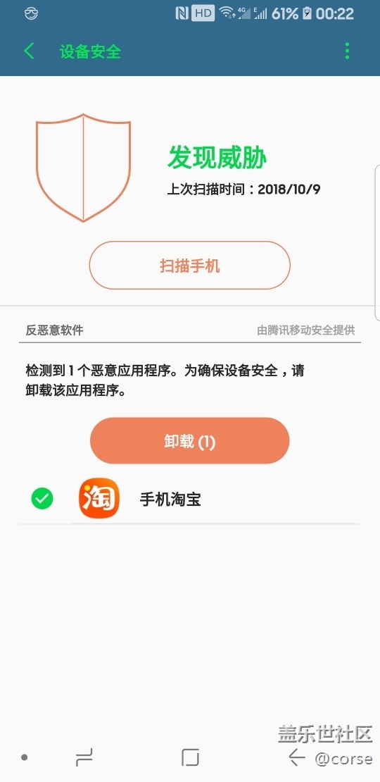 更新過版本 手機(jī)淘寶是惡意軟件 三星商店卸載重裝還是一樣 智能管理器右上角更新過了 play商店重新下載了還是惡意軟件 怎么解決 大神們!