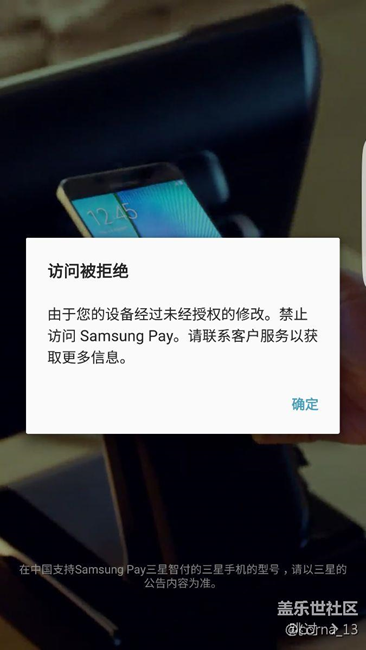 s6edge+ SAMSUNG Pay 設(shè)備經(jīng)過未授權(quán)的修改,禁止訪問,是怎么回事?
