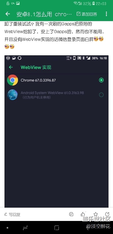 我手機(jī)安裝了Chrome70版本,而開發(fā)者選項(xiàng)里無(wú)法選擇Chrome作為默認(rèn)webview,非常郁悶啊,怎么辦?