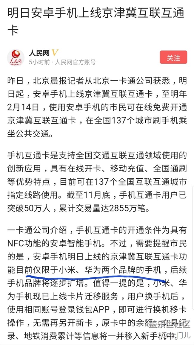 明日安卓手機開始支持京津冀一卡通,就是沒三星 圖片