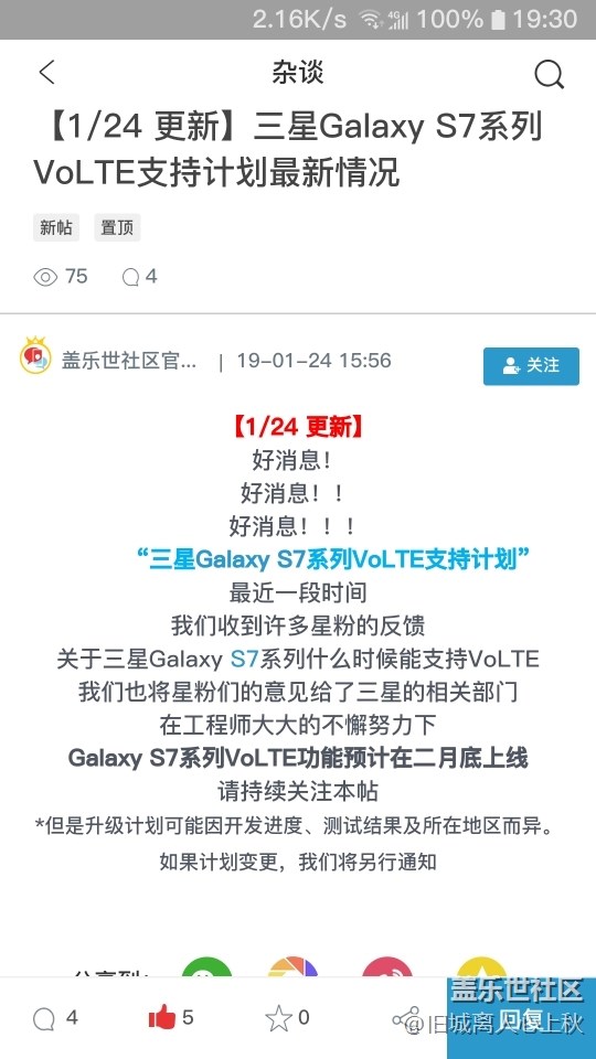 帖子名稱: 2月底將更新支持電信volte。