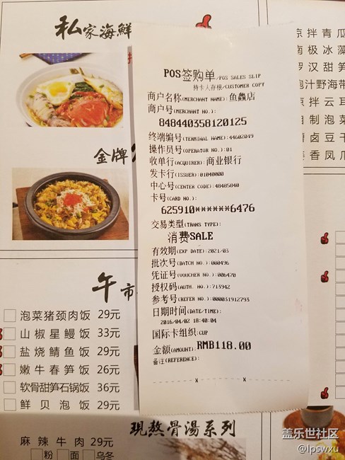 綁定的中行芯片信用卡,晚飯埋單時對小妹說刷卡,問卡呢,告之用手機,對方立刻提示不支持。POS機是普通的磁條刷卡機。我說可以,跟一般刷卡一樣操作,嘗試下。小妹再次提出要先刷卡,我快速將已調(diào)出刷卡界面的手機,背面貼向POS刷卡條,第一下沒反應(yīng),又貼近晃了下,POS機點亮,小妹為之一振,有了,極配合的輸入金額,POS提示輸入密碼。我的中行信用卡沒有設(shè)密碼(不是小額免密功能),到了需輸密碼時點下確認鍵,在帳單上簽字就行了。刷手機到了這一步我反到猶豫了一小下,點確認還是輸入取款密碼?錯了豈不是尷尬,最終還是只點了確認鍵,幾秒鐘帳單出來了,簽字,成功。兩個小妹連連稱奇,哈哈!