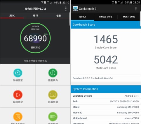 三星Galaxy S6 edge+采用了Exynos 7420八核處理器,采用了4xCortex-A57 2.1GHz與4xCortex-A53 1.5GHz的搭配,前面四個(gè)核心以高性能為賣點(diǎn),而后面的四個(gè)核心主打低功耗,兩者結(jié)合起來讓CPU擁有較高的能耗比,通過動(dòng)態(tài)調(diào)節(jié)頻率與調(diào)用不同核心來減少耗電與發(fā)熱。CPU的制造工藝為14nm,而對(duì)手蘋果A8和高通驍龍810采用的都只是20nm工藝。
