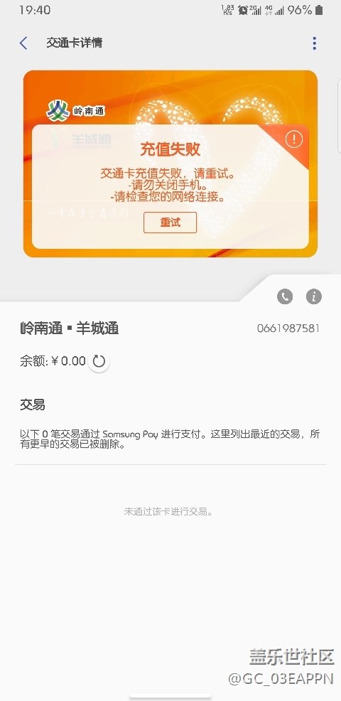 更新3.7版本的三星pay后 交通卡不行了 余額被清零  充值兩次都不成功 錢也扣了
