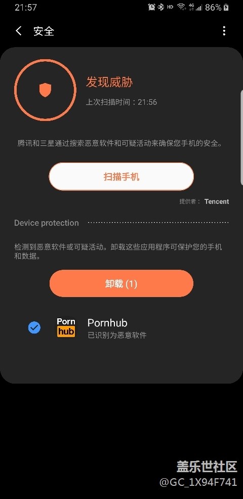 如圖所示  一直提示我卸載它  一年多了  誤報(bào)還沒有改正  請(qǐng)三星快點(diǎn)解決這個(gè)問題