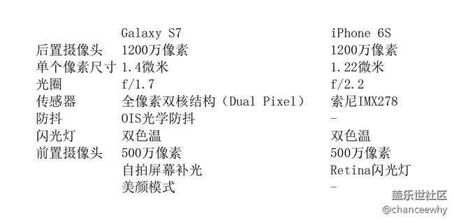 前置攝像頭的拍攝組合,不支持OIS防抖;三星Galaxy S7采用 1200萬像素主攝像頭(f/1.7)