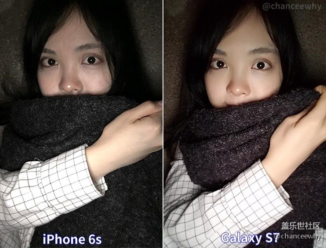 么重,不過膚色偏黃,沒有6S顯得粉嫩,原本黑色的圍巾也偏色了。另外,S7樣張對比度高