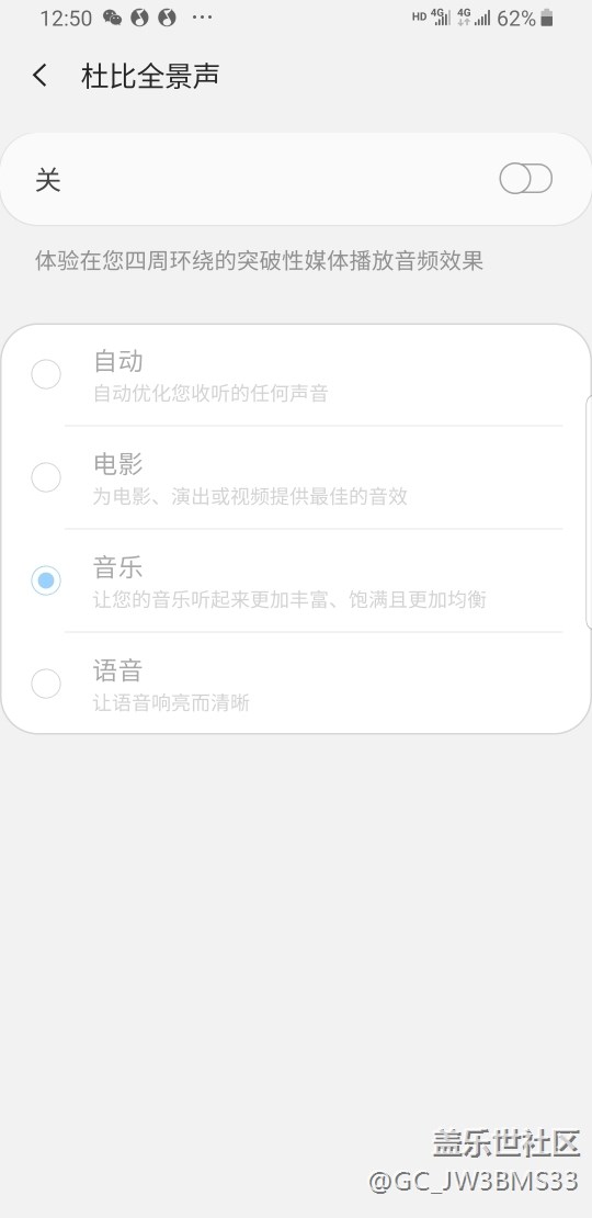 原來(lái)8.0時(shí)候的不開杜比全景聲點(diǎn)外放都已經(jīng)非常不錯(cuò)了,聲音都很渾厚。one UI之后聲音很尖銳刺耳,音樂一點(diǎn)層次感都沒有,雙揚(yáng)聲器跟擺設(shè)一樣。開了杜比之后聲音聽感更差,跟千元機(jī)一樣。。。