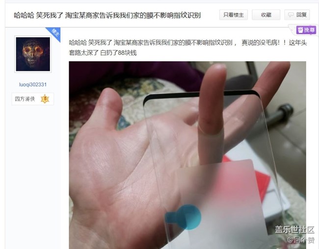 帖子名稱 有網(wǎng)友在淘寶上買手機(jī)膜被坑了