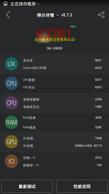 安兔兔的測(cè)試總成績(jī)是63761分,遠(yuǎn)超出了其它安卓機(jī)型,直接達(dá)到了機(jī)皇的標(biāo)準(zhǔn),雖然跑分并不能說(shuō)明一切,但是這個(gè)分?jǐn)?shù)還是比較真實(shí)的展現(xiàn)了Exynos 7420這塊cpu的實(shí)力。